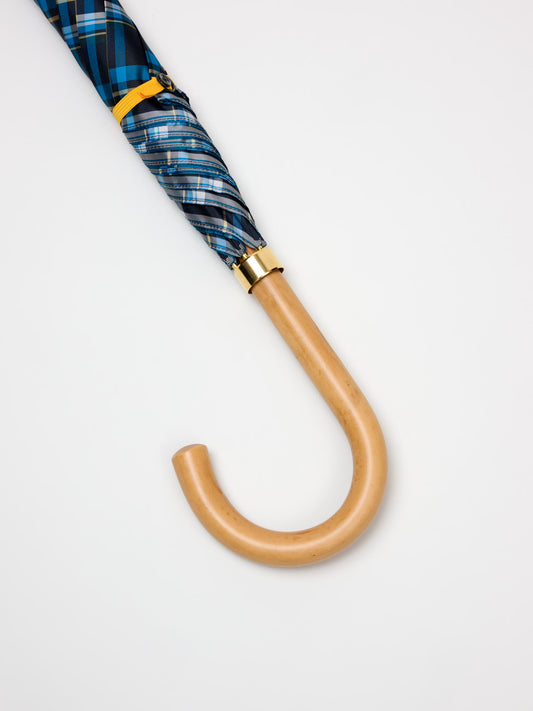 Umbrella W. Malacca Handle, Blue/Yellow/Black Check