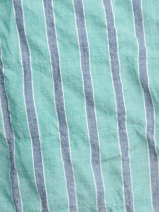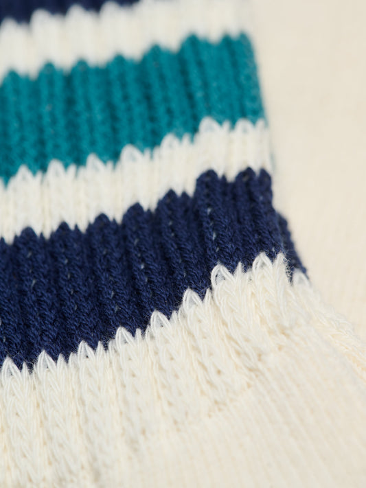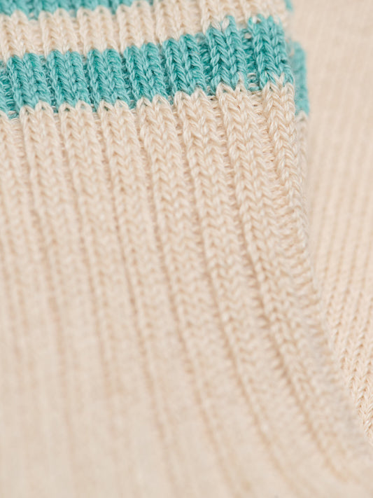 Hemp Organic Cotton Stripe, White Sand/Turquoise