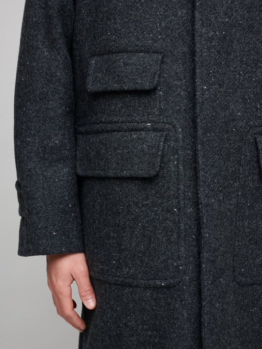 Alpaca Wool Silk Tweed Soutien Collar Coat, Gray Brown Hairline