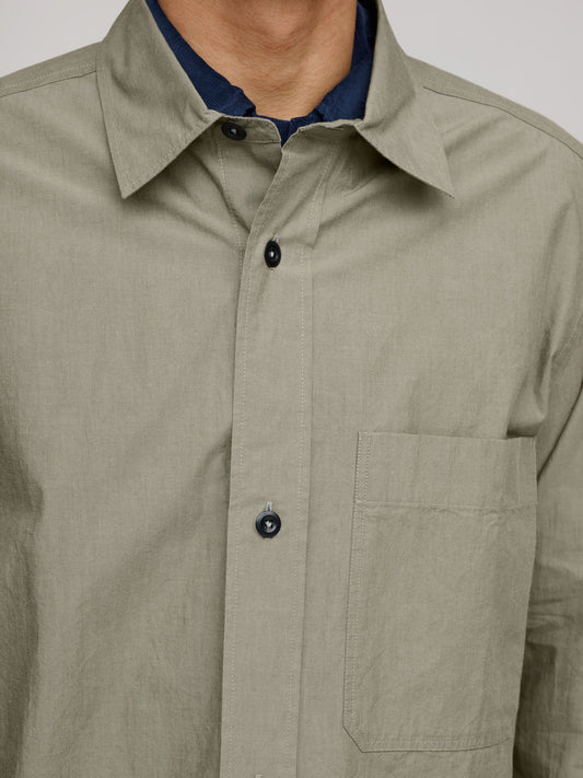 Basic Shirt Brushed Cotton Chambray, Khaki Green