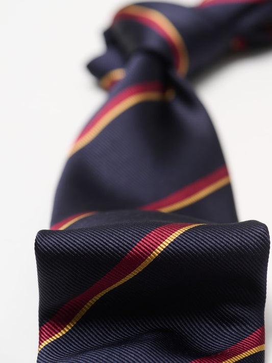 Regimental Stripe Reppe Tie, Navy Red & Yellow