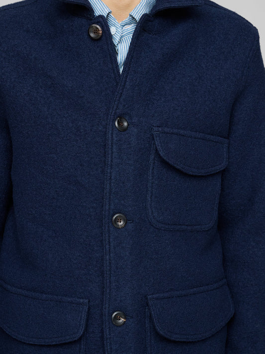 Boucle Wool Half-Zip Fleece Jacket, Navy Ecru & Khaki