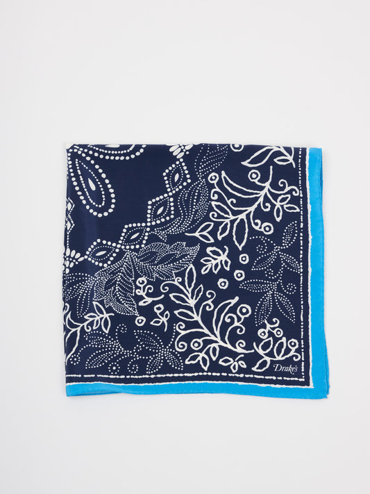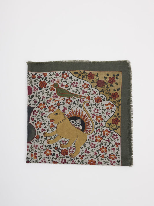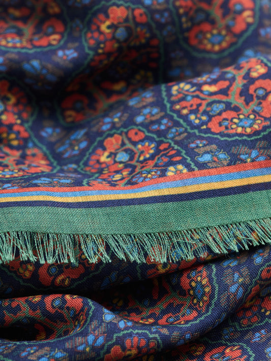 Large All Over Paisley Wool Silk Scarf, Navy & Green