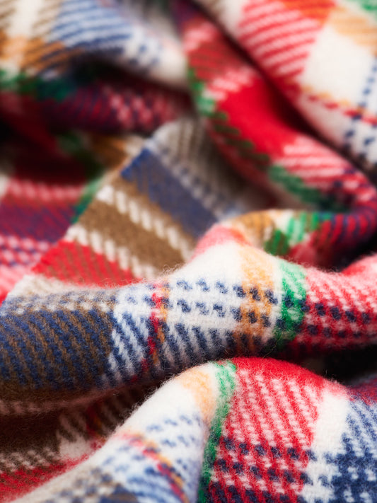 Check Woollen Rectangle Scarf, Red Brown & Blue