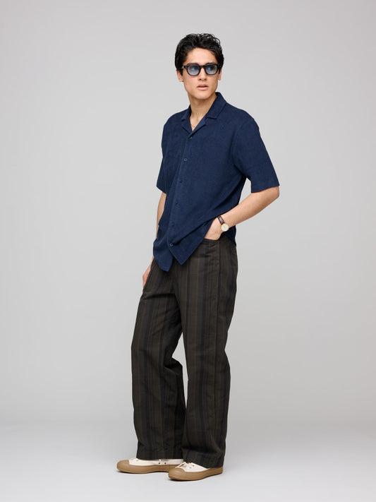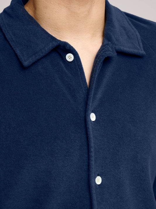 Towelling Camp Collar Shirt, Navy