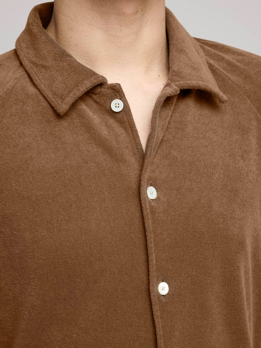Towelling Camp Collar Shirt, Dark Sand
