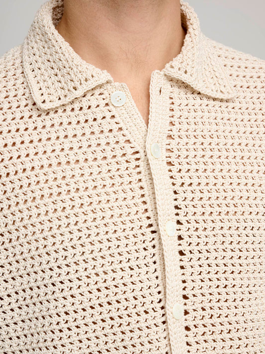 Hand Crochet Knit Half Sleeved Shirt, Ivory