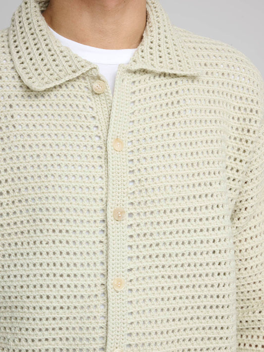 Hand Crochet Wool Knit Shirt, Light Khaki