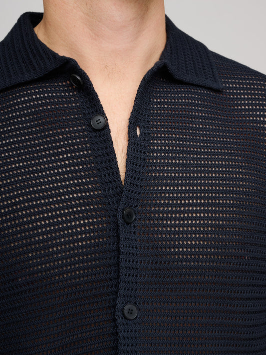Cotton Mesh Knit Half Sleeved Shirt, Dark Navy