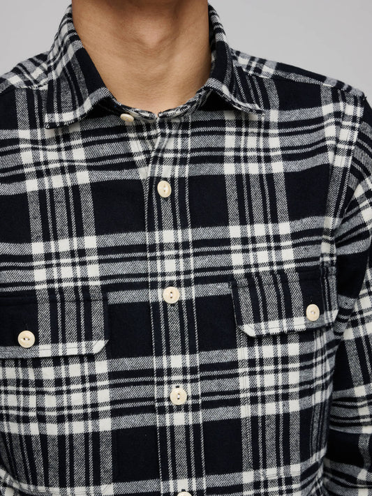 Check Heavy Cotton Work Shirt, Black & Ecru