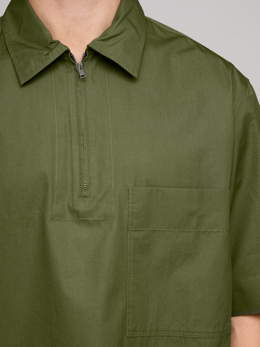 Half Zip Pull On Shirt Compact Cotton Poplin, Grass