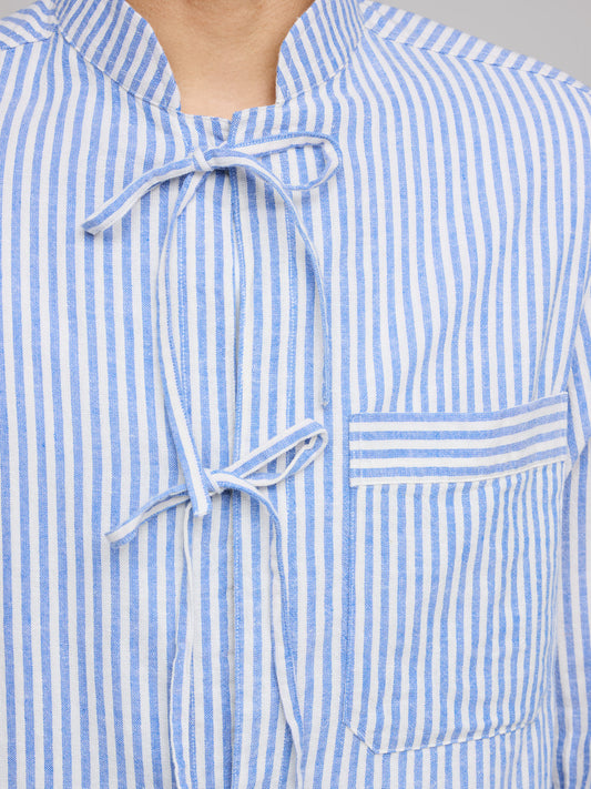 Grandad Collar Tie Shirt, Blue & White Stripe
