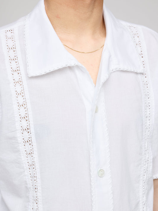 Short Sleeve Wander Shirt Leno Cloth, White