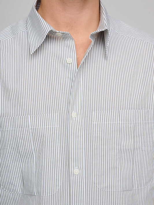 Basic Shirt Two Tone Cotton Stripe, Forest/Grey/Off White