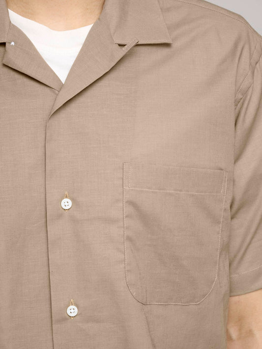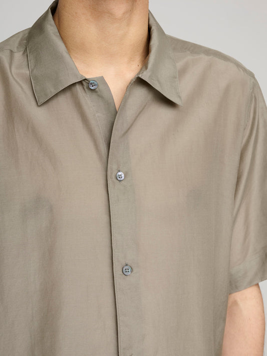 Fine Cotton Linen Voile S/S Shirt, Pale Brown