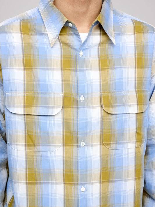 Overall Shirt Graphic Grid Check, Slate Blue & Off White