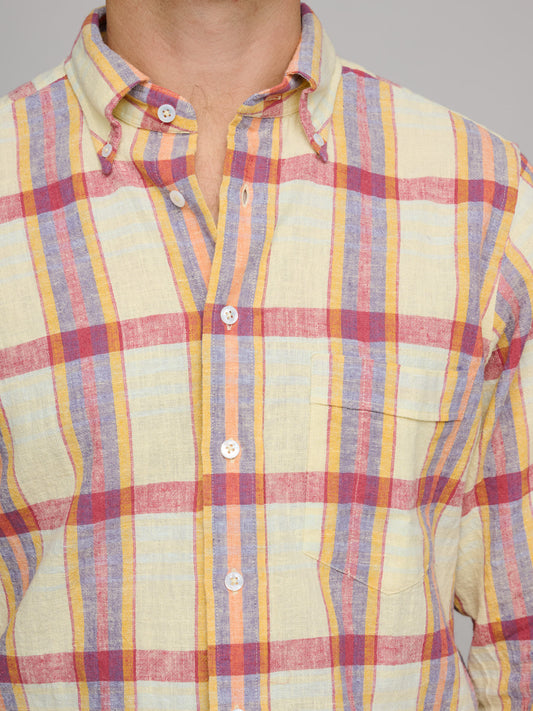 Madras Check Cotton Linen BD Shirt, Yellow & Red