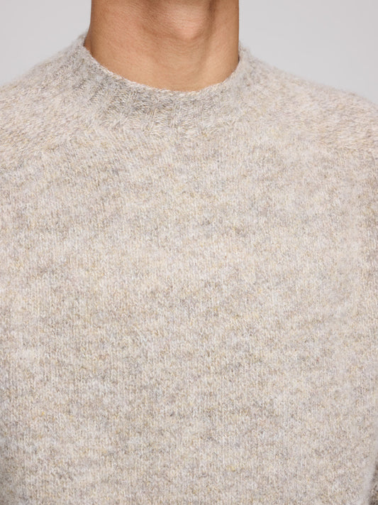 Brushed Shetland Crew Neck, Oatmeal Melange