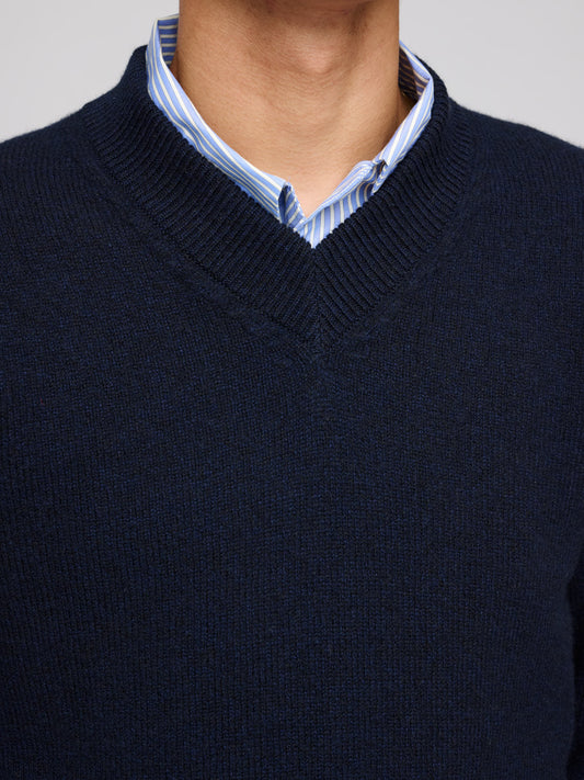 Lambswool V-neck Jumper, Dark Navy Mouline