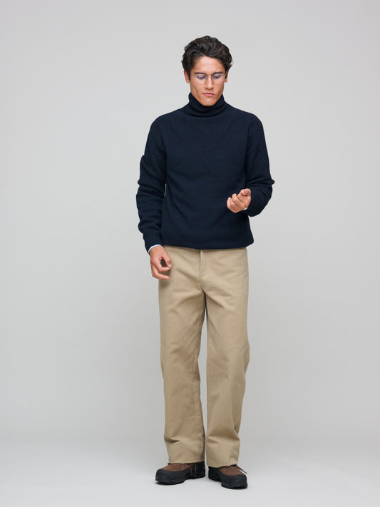 Roll Neck Sweater, Dark Navy Mouline