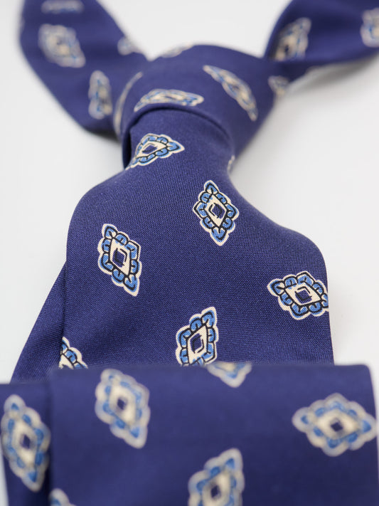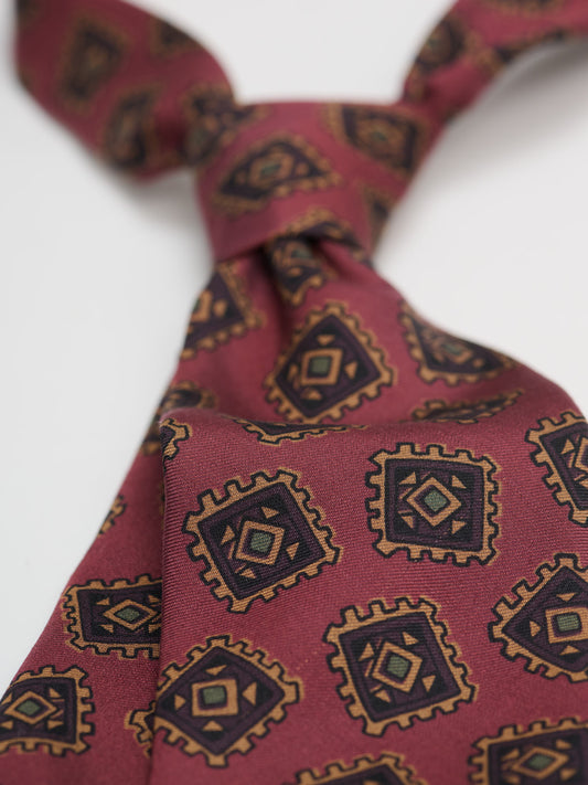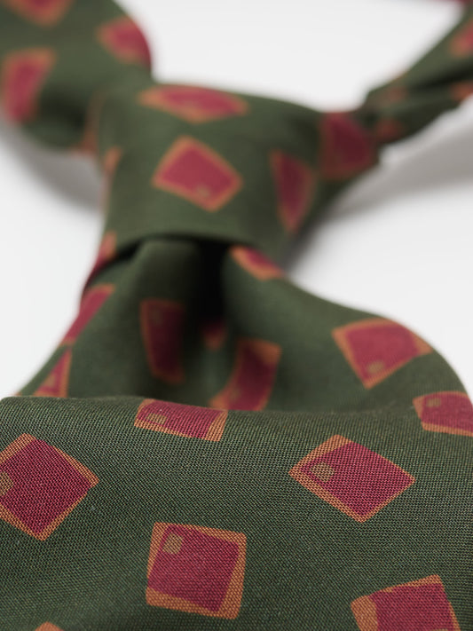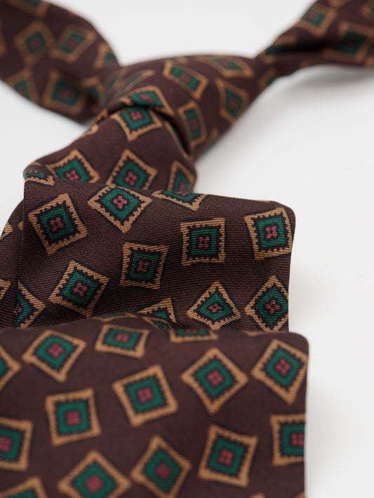 Jumbled Medallion Wool Silk Tie, Chocolate & Green