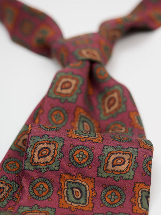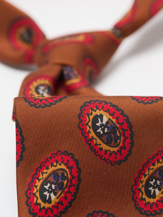 Large Paisley Medallion Silk Wool Tie, Orange & Green