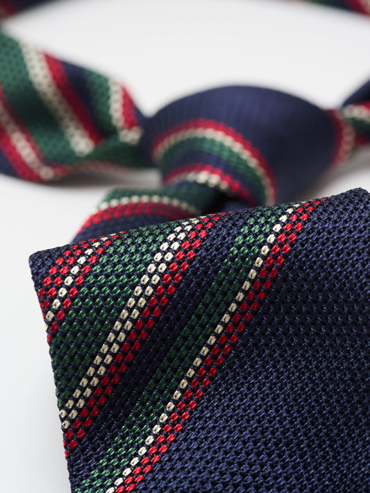 Hand Rolled Silk Grenadine Tie, Navy/Green/Red Stripe