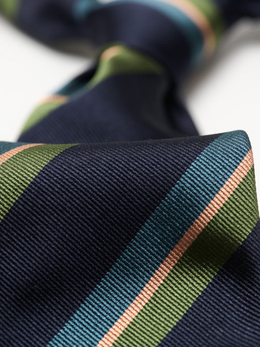 Sandwich Stripe Reppe Silk Tie, Navy Green & Aqua