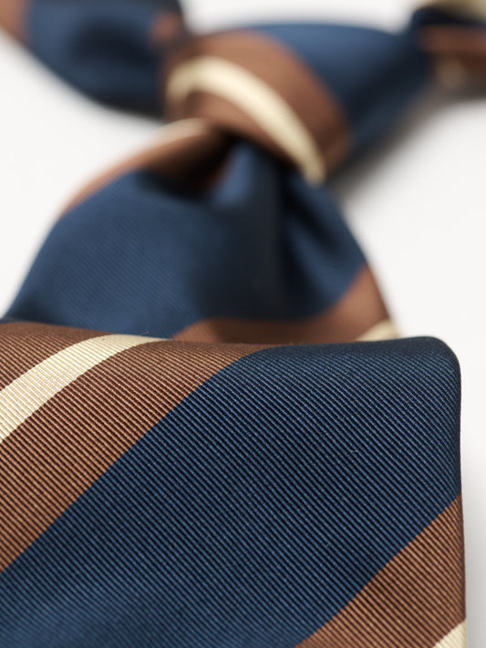 Stripe Mogador Silk Cotton Tie, Navy & Brown