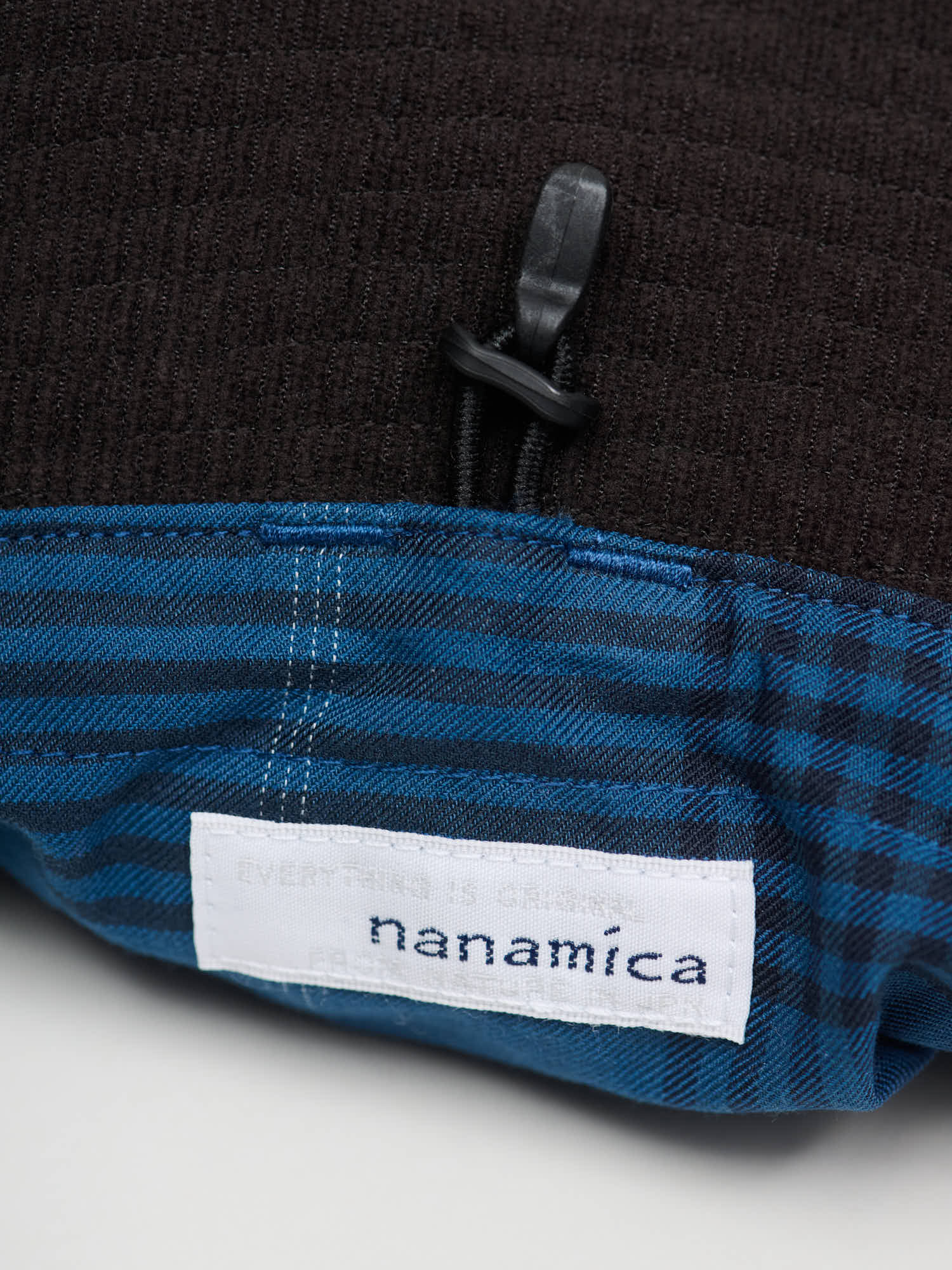 The interior showcases attention to detail with a lining rendered in a classic house check pattern, blending cotton with COOLMAX® technology for moisture management. This thoughtful approach continues to the underbrim, which is faced with a tonal polyester corduroy, adding a tactile contrast. For a secure, bespoke fit, the hat is equipped with a discreet internal adjustment strap.