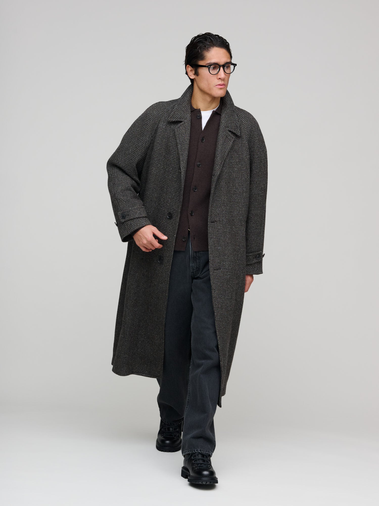 Crafted from a lightweight tweed woven with long alpaca fibers, this coat combines rich loftiness with natural elegance. The alpaca blend delivers exceptional warmth and lightness, preserving a traditional tweed texture while offering a soft, airy feel. The result is a fabric of delicate texture and refined warmth — an exquisitely luxurious finish.