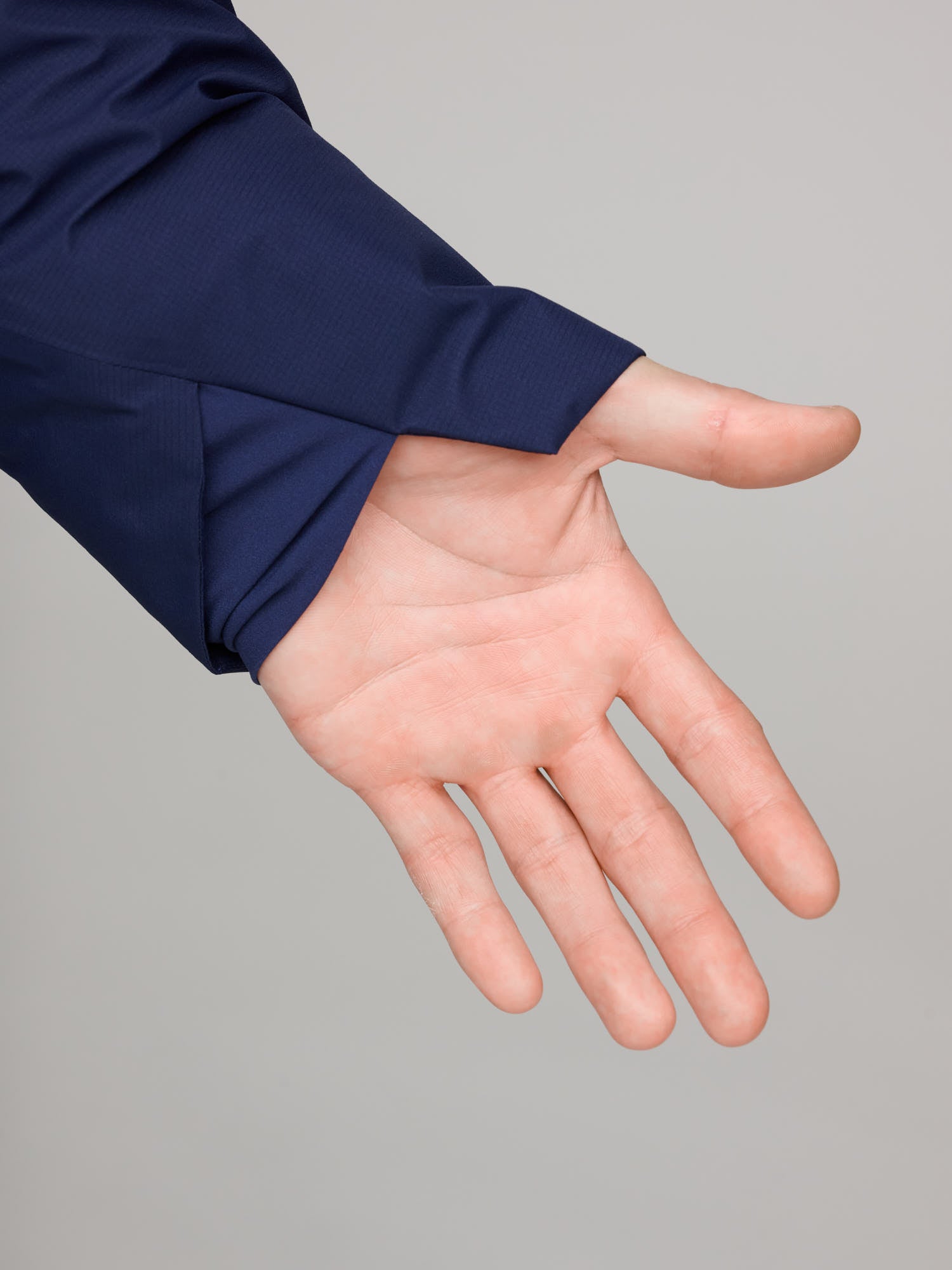 Composite-mapped European grey goose down insulation provides targeted warmth, while the adjustable, insulated StormHood delivers full coverage. Fitted cuffs seal out drafts, and an articulated pattern allows unrestricted movement.