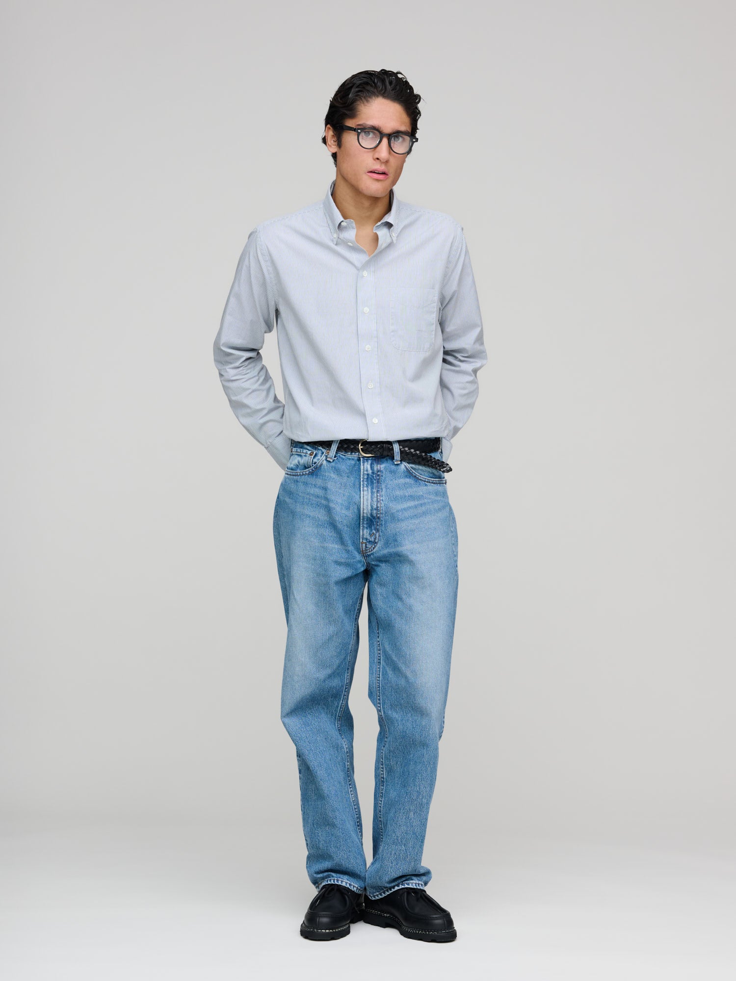 Our range of button down shirts is one which we’re very proud of, and it has taken us a handful of tries to perfect. They are heavily inspired by the american button down shirt from the 1950s with all of the details that we have come to know and love. These include a locker loop, box pleat, back collar button and a front pocket (ours has a slightly double arched stitching), split yoke, front placket and of course a curvy button-down collar both with a soft interlining. The fit is regular as it should be!
