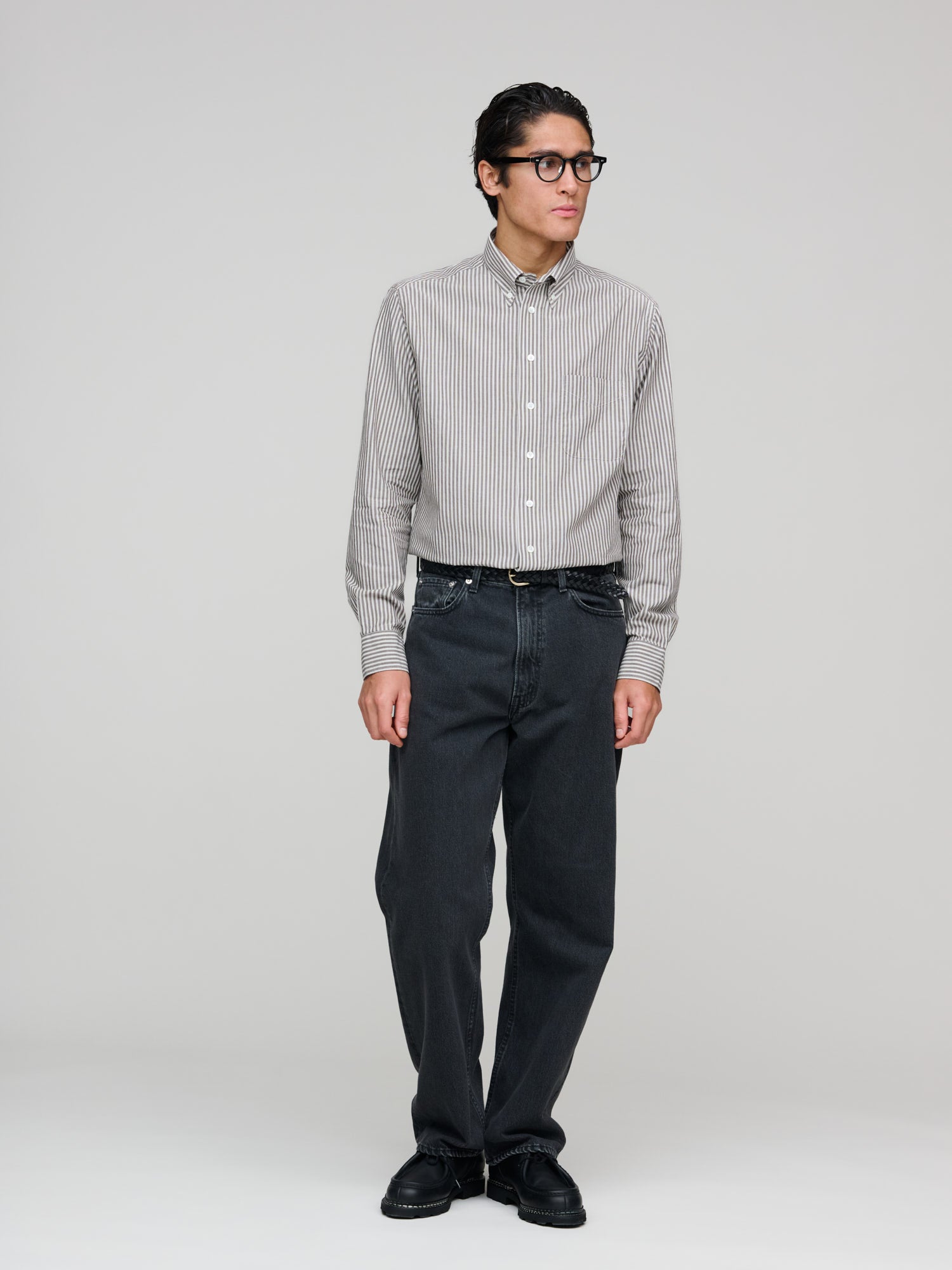 Our range of button down shirts is one which we’re very proud of, and it has taken us a handful of tries to perfect. They are heavily inspired by the american button down shirt from the 1950s with all of the details that we have come to know and love. These include a locker loop, box pleat, back collar button and a front pocket (ours has a slightly double arched stitching), split yoke, front placket and of course a curvy button-down collar both with a soft interlining. The fit is regular as it should be!