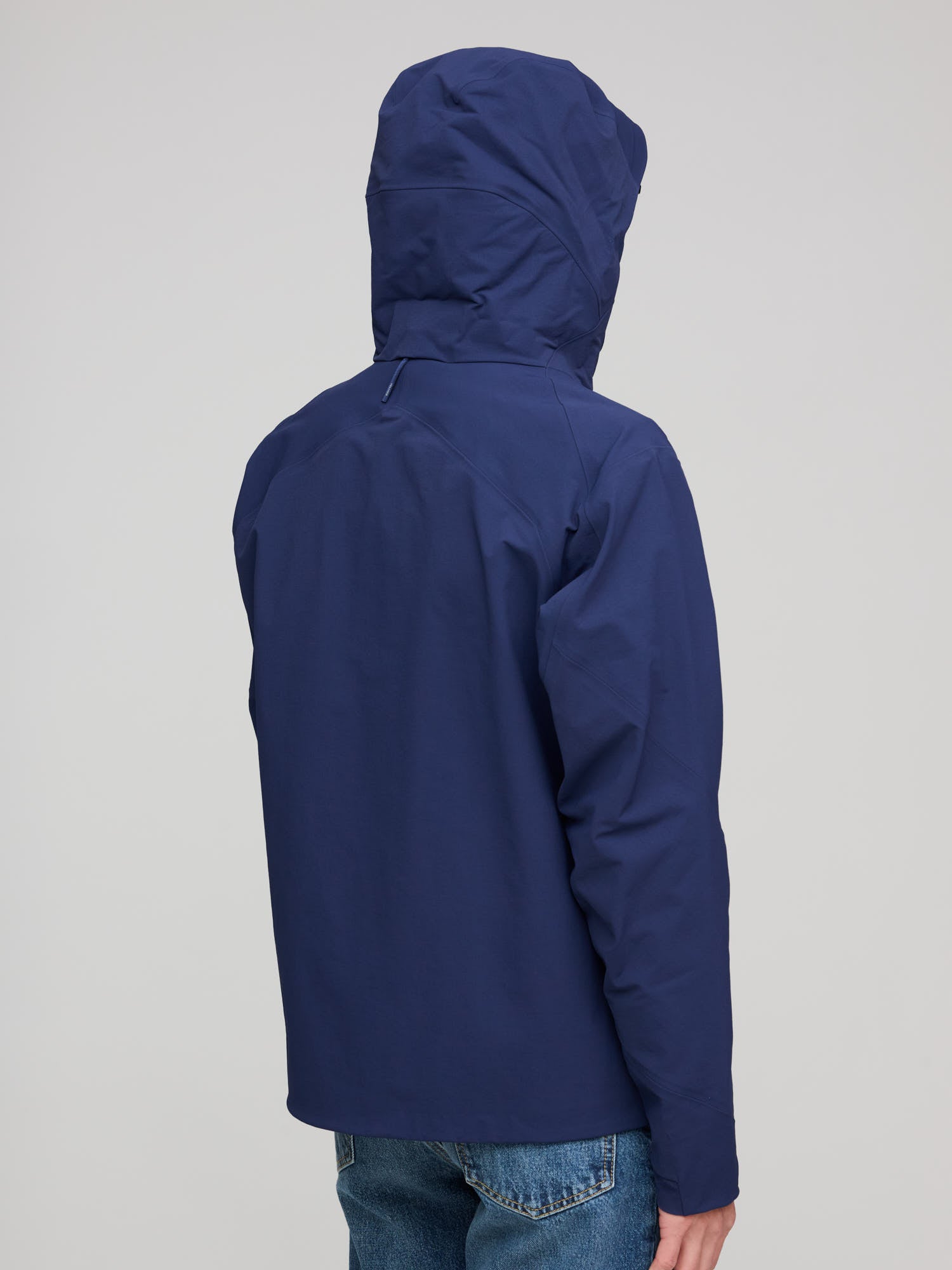 Decisive Veilance style in a softshell jacket for mixed weather. Hooded design made for function and everyday use. Crafted from a durable double-weave softshell that blocks wind, sheds light rain, and offers breathability with stretch for ease of movement. The StormHood™ adjusts for coverage without limiting vision. Articulated sleeves improve mobility, while hand pockets with hidden zippers provide storage without breaking the clean silhouette.