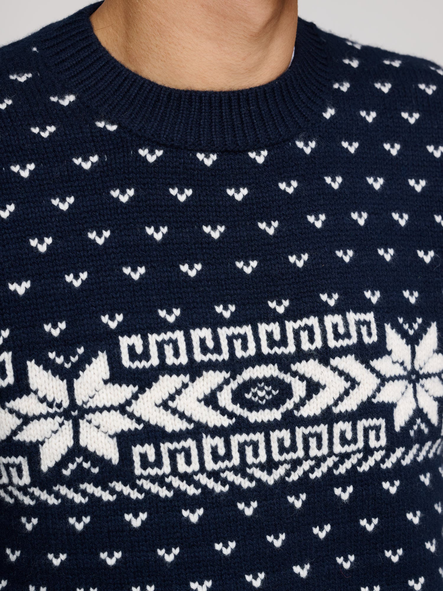 Our newest addition to the knitwear family, this jacquard knit features a Northern-inspired motif and is cut in our signature Easy fit. Knitted from a soft, weighty wool and cashmere blend that offers warmth and structure in equal measure. The pattern is woven directly into the fabric, giving depth and subtle texture without excess. Finished with ribbed edges and a relaxed drape that complements its laid-back character.