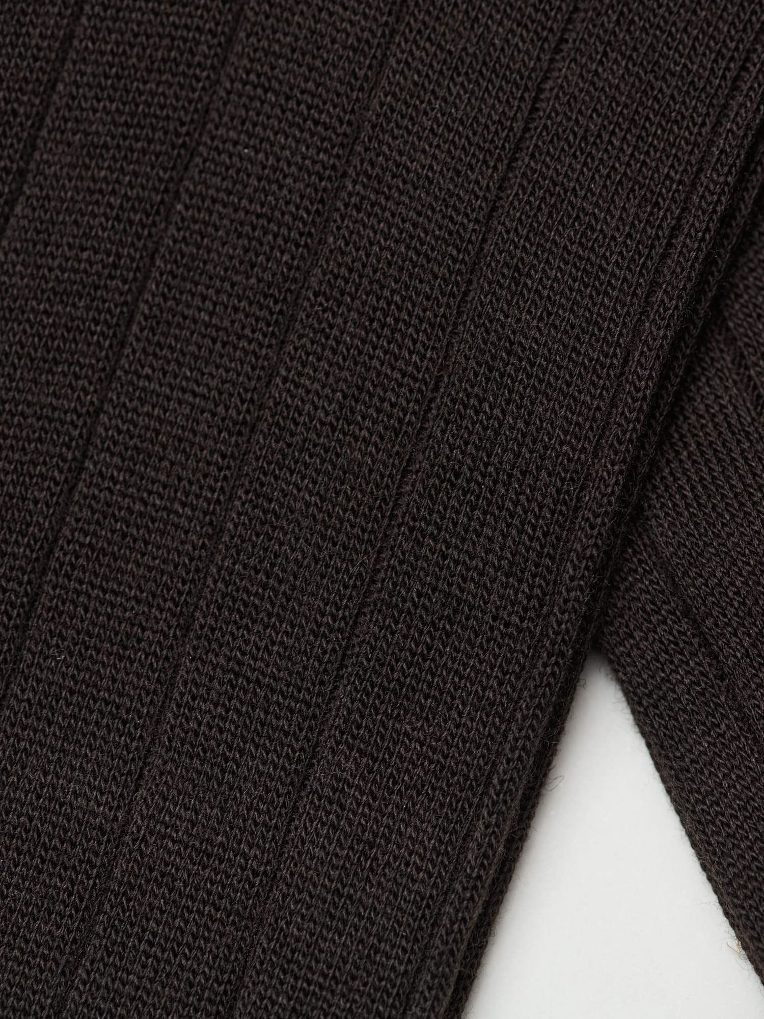 Fine Ribbed Wool Socks, Dark Brown