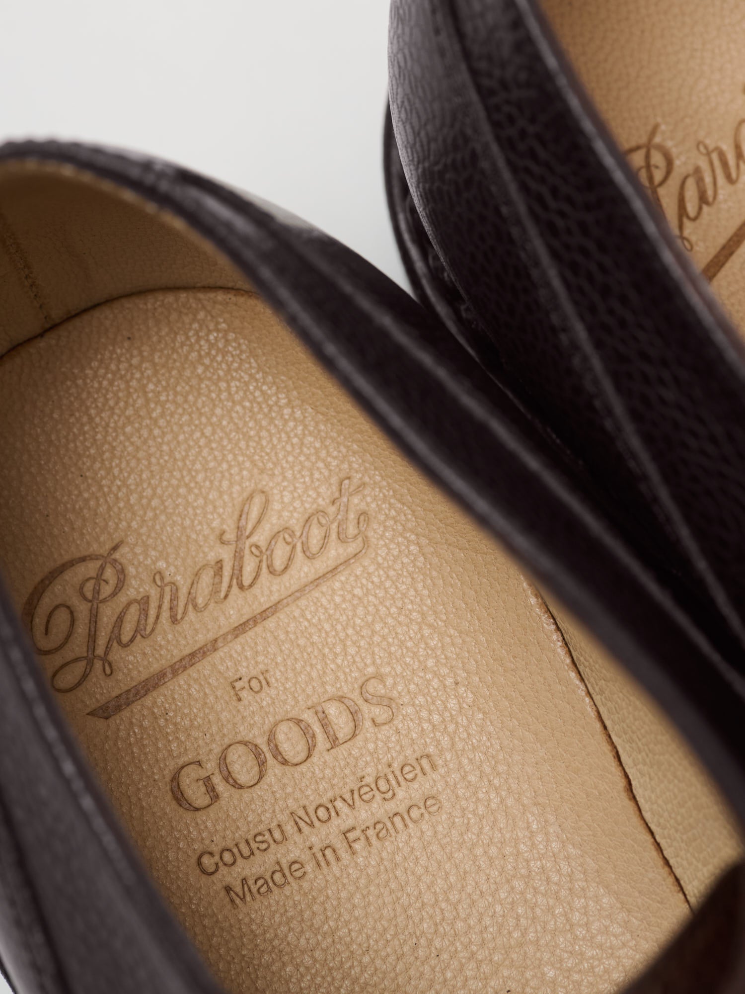 Proud doesn’t cut it... we’re absolutely THRILLED to announce our third collaboration with Paraboot. This time, we’ve iterated on the much-loved Chambord. We’ve gone for a grained leather and incorporated a distinctive wave welt familiar from the Michael. Available in chocolate brown and black with co-branded in-soles and dustbags.