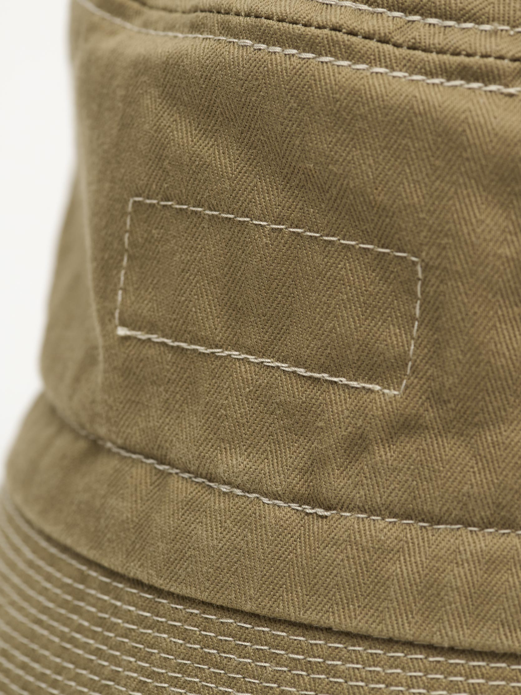 Cableami's Herringbone Bucket Hat, a classic meticulously crafted in Japan. This exquisite piece pays homage to 1970's French television with its subtle reference, adding a touch of nostalgia and cultural flair to your ensemble. Reproduced from the iconic 50’s Army Baker Pants, this hat seamlessly blends history with contemporary style, making it a must-have accessory for any fashion aficionado.
