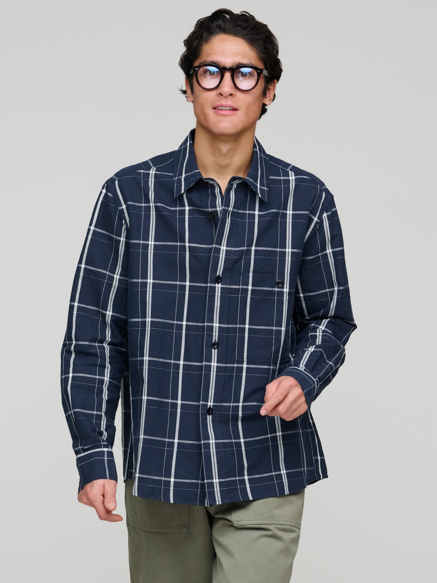 Overall Shirt Graphic Grid Check, Slate Blue & Off White