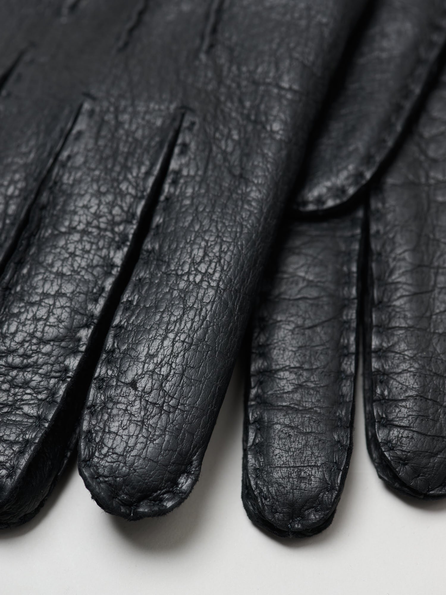 A timeless glove with a refined, minimalist silhouette. Handsewn in supple peccary leather, a wild boar from the Amazon Jungle, which is considered being the most exclusive glove leather. Lined with the softest cashmere yarn, it offers both warmth and elegance — the perfect companion through damp autumn days and cold winter months.