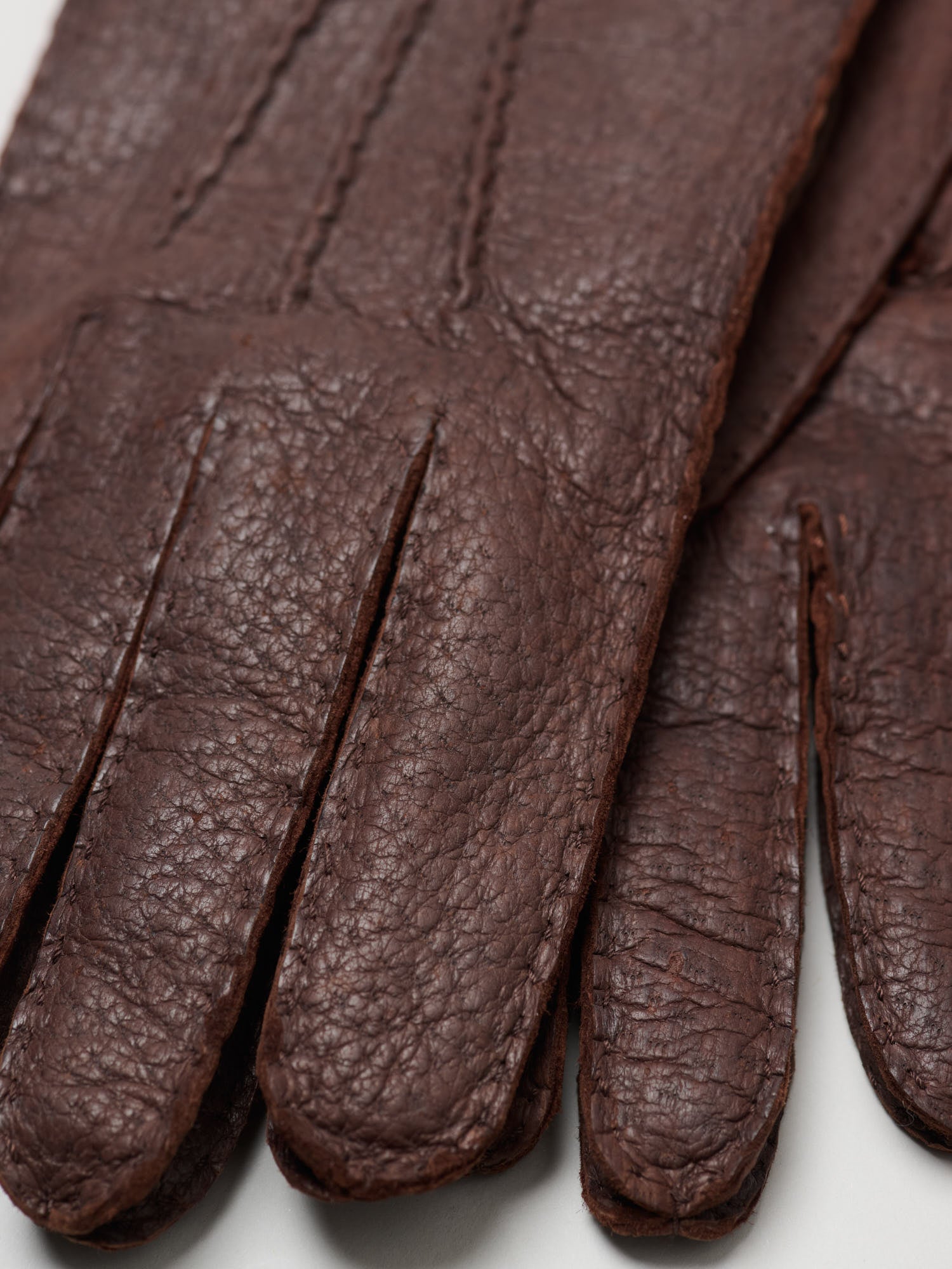 A timeless glove with a refined, minimalist silhouette. Handsewn in supple peccary leather, a wild boar from the Amazon Jungle, which is considered being the most exclusive glove leather. Lined with the softest cashmere yarn, it offers both warmth and elegance — the perfect companion through damp autumn days and cold winter months.