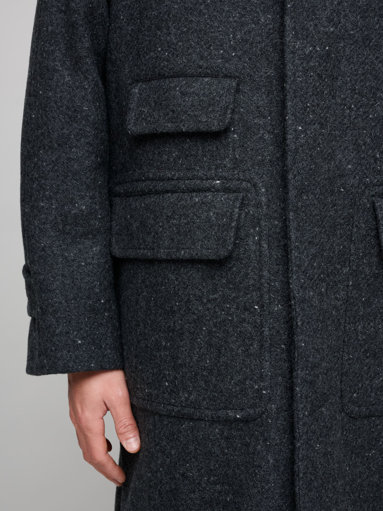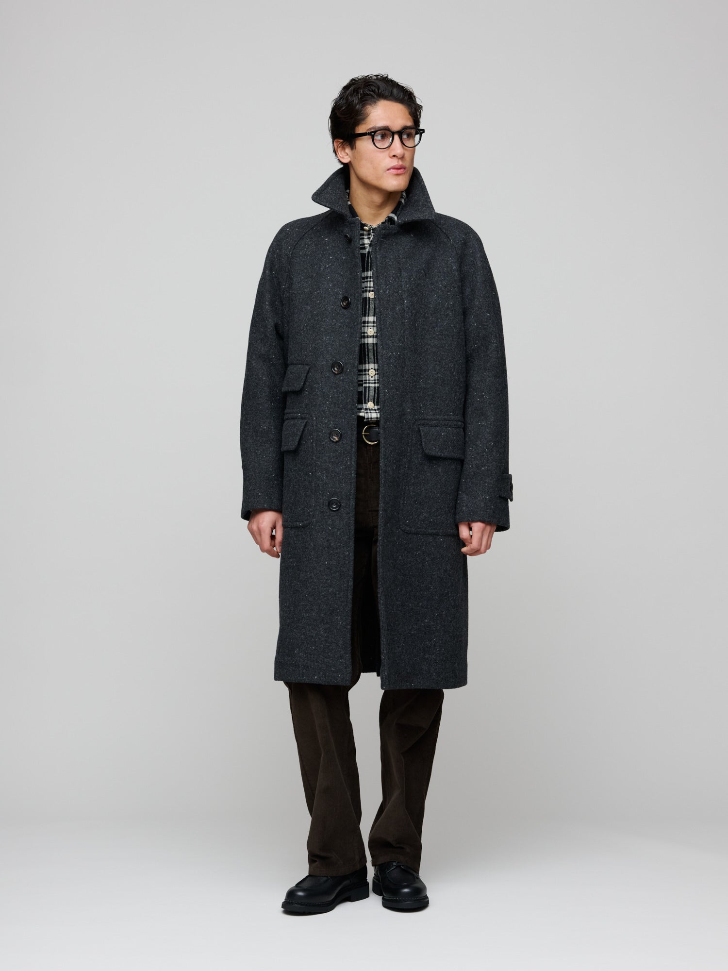 This raglan coat is easy and generous, cut to slip comfortably over anything and everything. Here, it’s reimagined in an 18.2oz flecked wool — a fabric with a satisfying weight and texture that feels at once practical and indulgent.