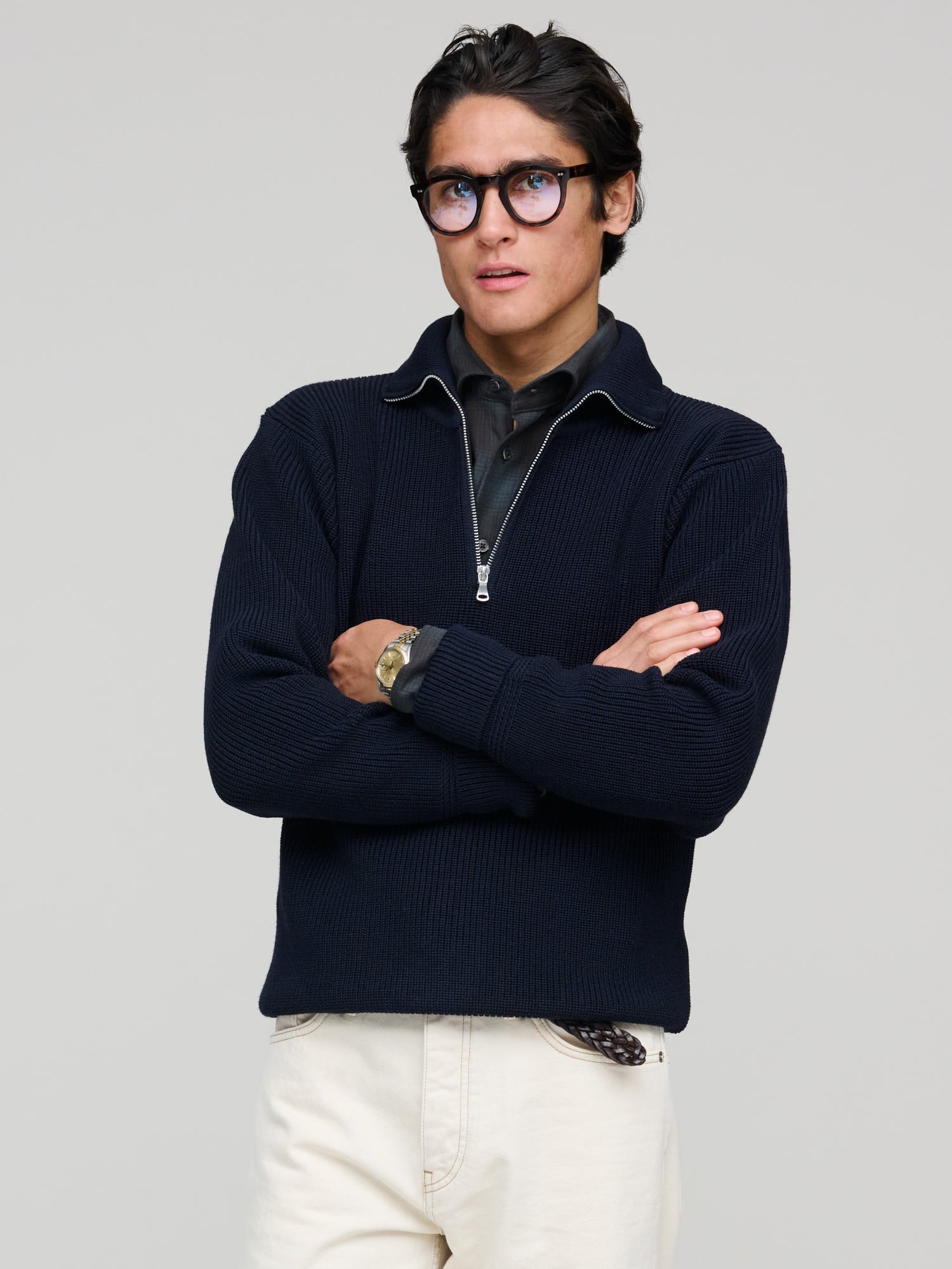 Designed in Denmark in 2024, the Sailor Half-Zip is a mid-weight wool sweater made for layering and warmth in all conditions. Knitted compact in a half-cardigan stitch (7 gauge), it balances durability with ease of wear.