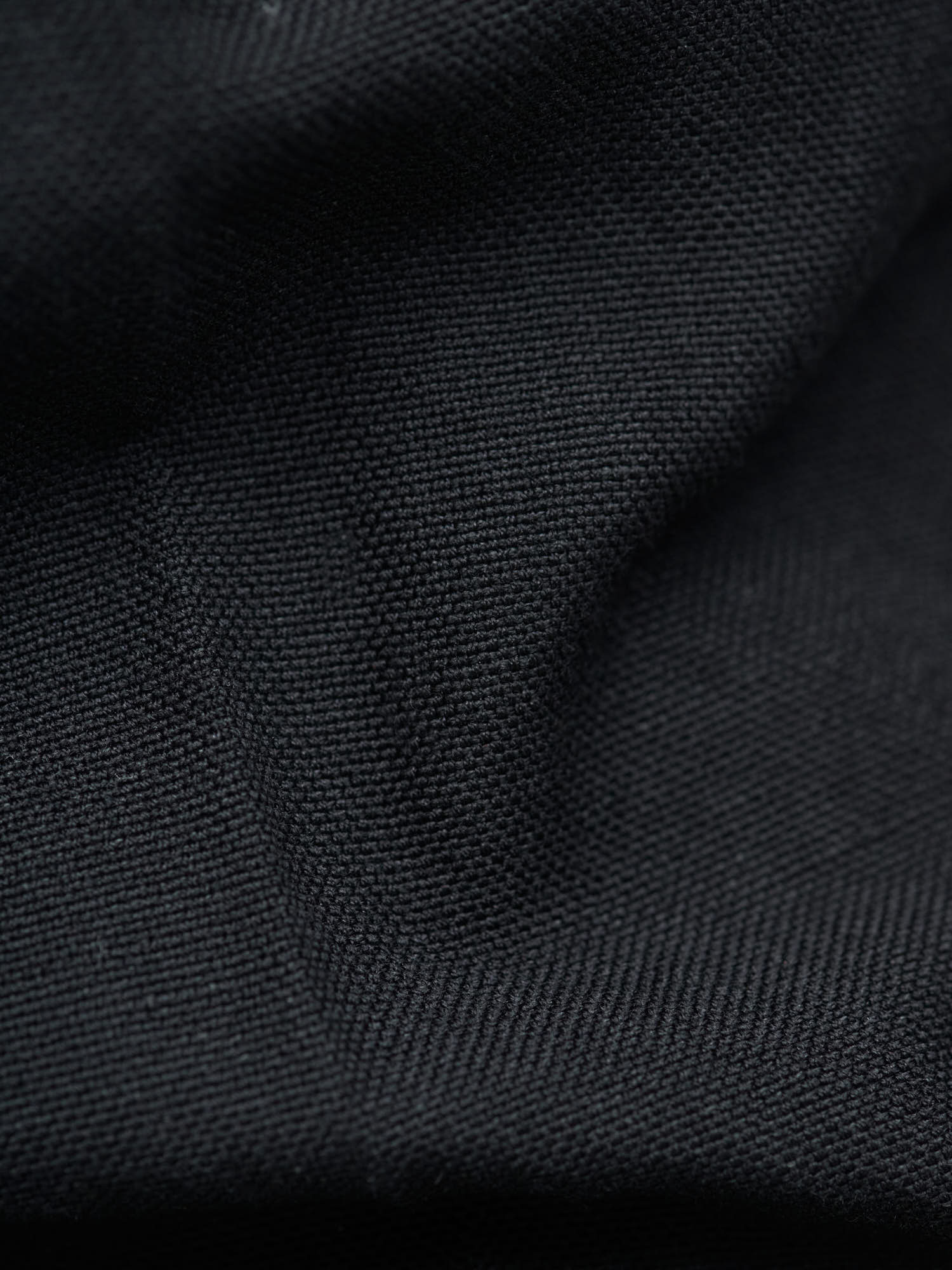 Crafted from a dense Oxford cloth, these wide-fit shorts utilise a deliberate blend of wool, cotton, and linen. This specific composition results in a fabric that possesses a dry, refreshing handle and a subtle natural sheen. The weave is tight and structured, yet it retains a soft drape and a textured surface that will develop further character with continued wear. Finished with a clean, short silhouette, they offer a functional approach to warm-weather dressing, prioritising breathability and textile depth over simple utility.